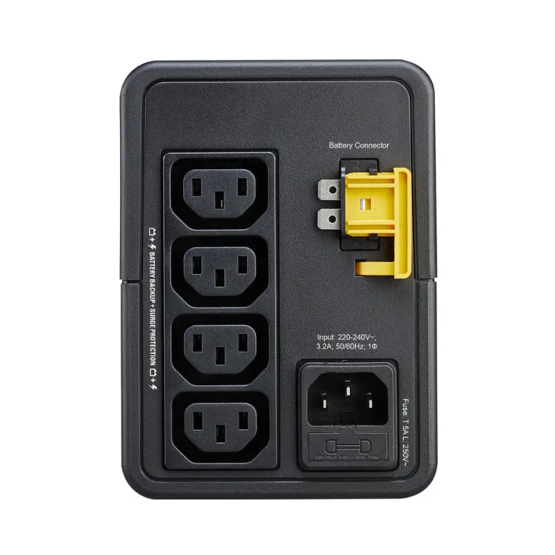 مزود بأربعة مقابس من إخراج IEC 320 C13، ويوفر جهاز يو بي اس سهولة من ايه بي سي لاتصال شامل للعديد من الأجهزة.